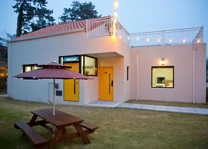 The lodge is nestled in the Aewol district, 3.1 km from the Teseum Jeju Teddy Bear Museum. This accommodation is a 19-minute drive from Jeju International airport and about 10 minutes by car from Kimsangeon Independence Struggle Monument.